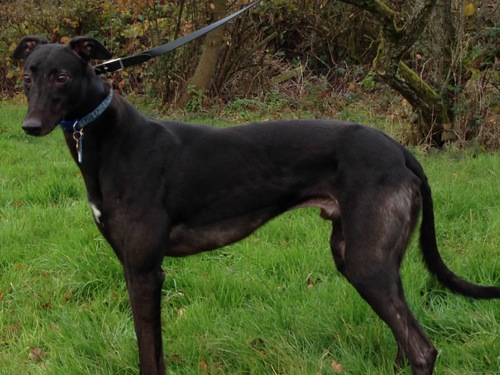 He is a tall, confident and friendly black, castrated male who was born in June 2008. Banksy did suffer from extreme “happy tail” syndrome, he’s still a happy and waggy tailed chappie, but he now has a somewhat shorter tail than he is pictured here with since he had to undergo emergency amputation to prevent further pain and infection setting in.