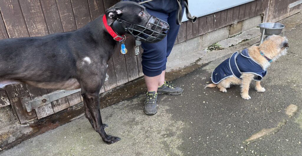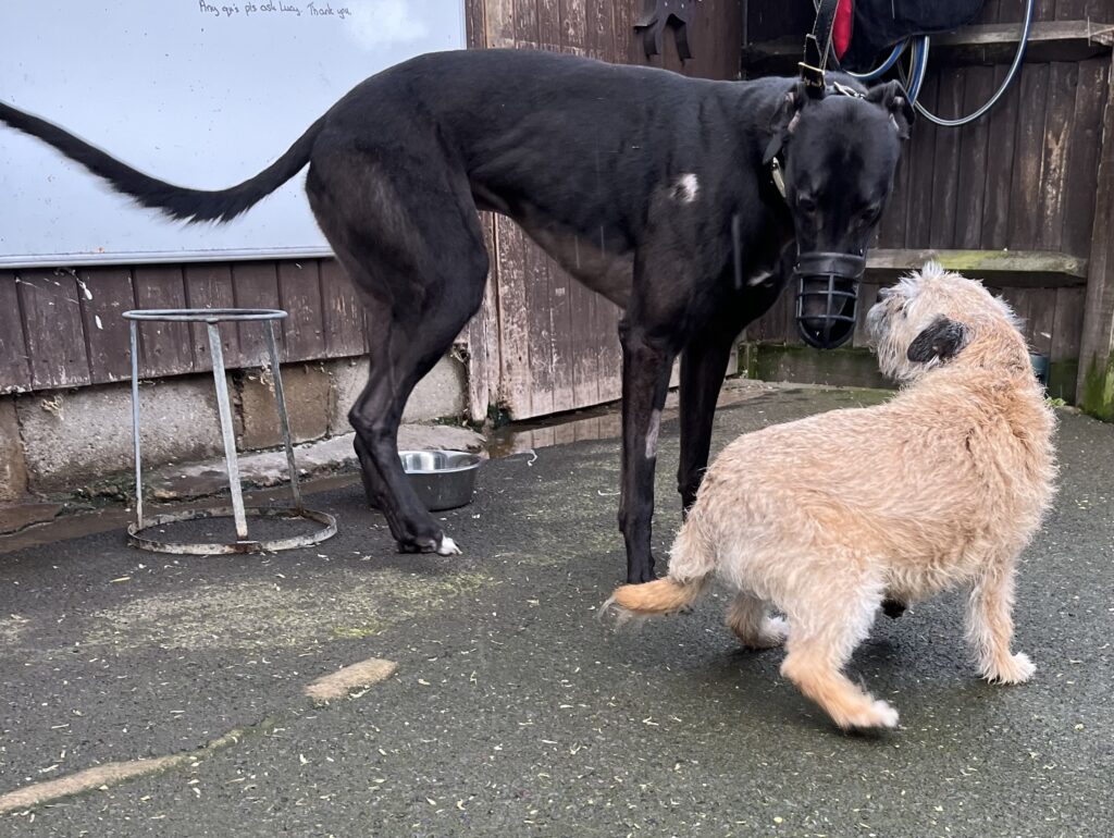 Cash has been tested with other breeds of dog, he is rather eager to say ‘hello’ to them and needs a bit of guidance from his handler so this is done politely (he sometimes forgets how big he is compared to the little ones!)  After all the excitement of meeting his new friend he then turns to the new humans for additional attention; greyhound cuddles that he loves!
