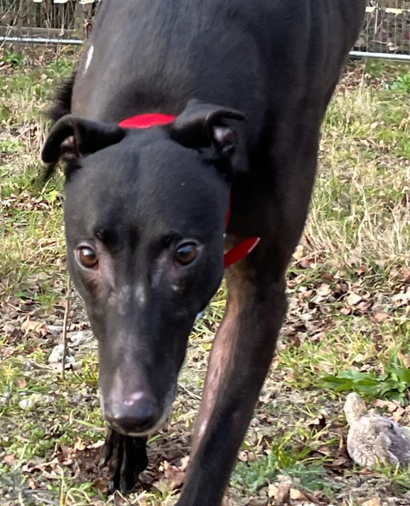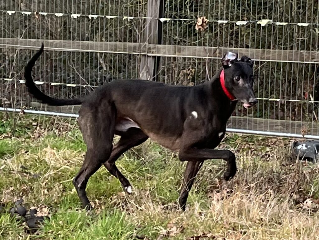 Cash has been tested with other breeds of dog, he is rather eager to say ‘hello’ to them and needs a bit of guidance from his handler so this is done politely (he sometimes forgets how big he is compared to the little ones!)  After all the excitement of meeting his new friend he then turns to the new humans for additional attention; greyhound cuddles that he loves!