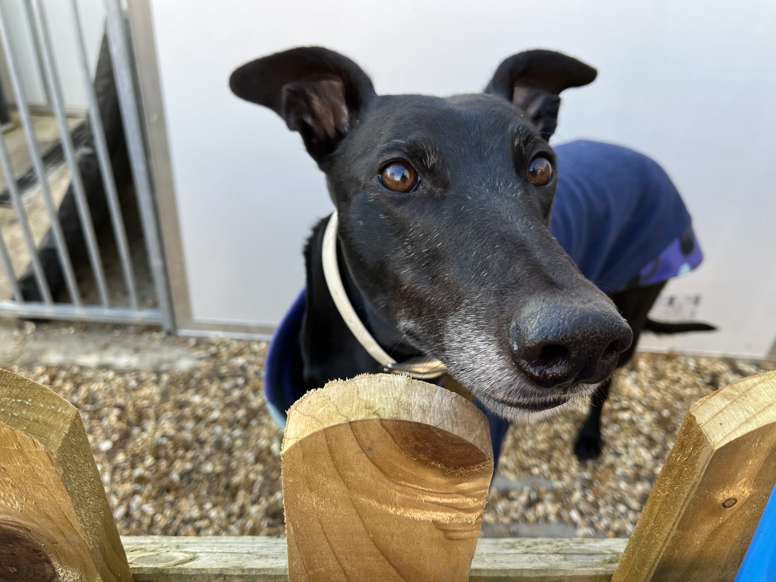 Stairs and different floors are no problem for the boy, he races up stairs inside and out at lightning speed. Watch out if you are on the stairs too, stand still and move out his way, you don’t want to be knocked down by this superhero greyhound!
