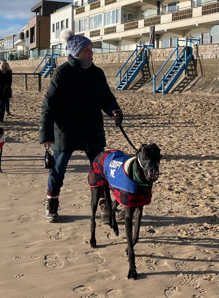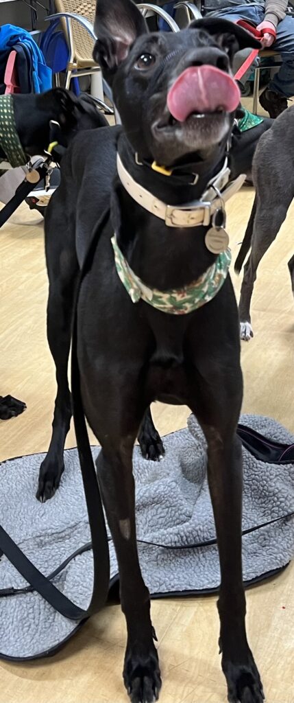 Fury is very friendly, enjoys a good cuddle and bottom wiggle! This lad has come straight from racing kennels, the outside world is all new for him. Fury enjoys visiting new places and is always keen to explore somewhere new. This may be a different walk, friends house – meeting fellow greyhounds or going into a cafe or pub, where he is made a fuss of and even is given some doggie treats too!