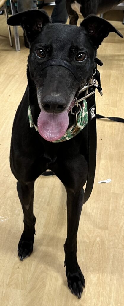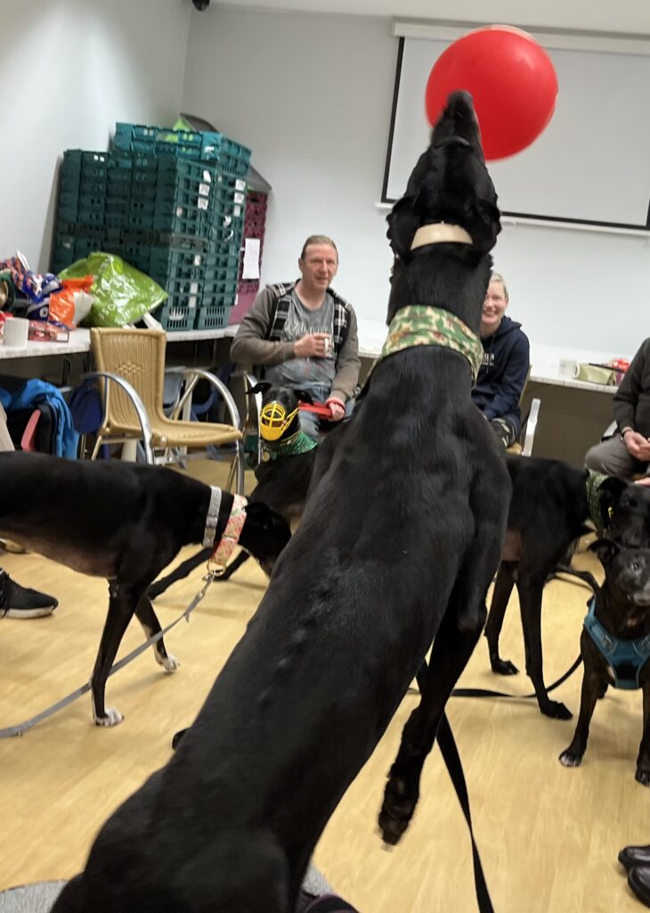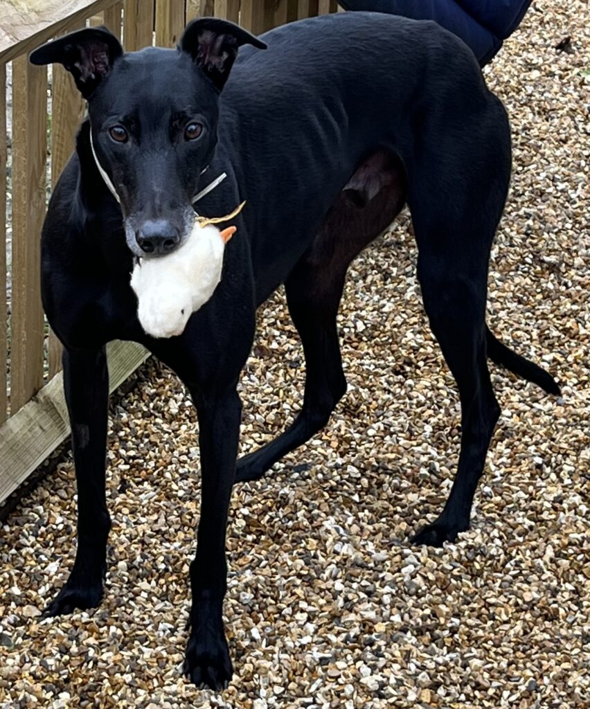 This lad loves his food but isn’t a morning boy so breakfast doesn’t always get eaten but dinnertime and treats – not a problem! Fury is fine around the other greyhounds in the house, he shares attention, although does his best to have it all to himself.