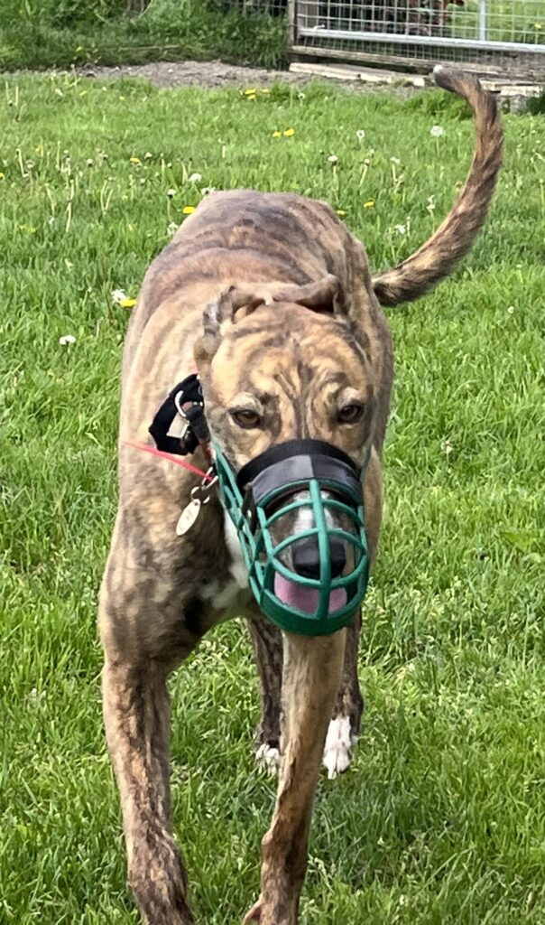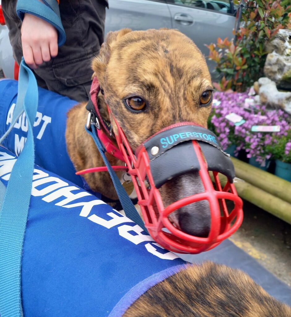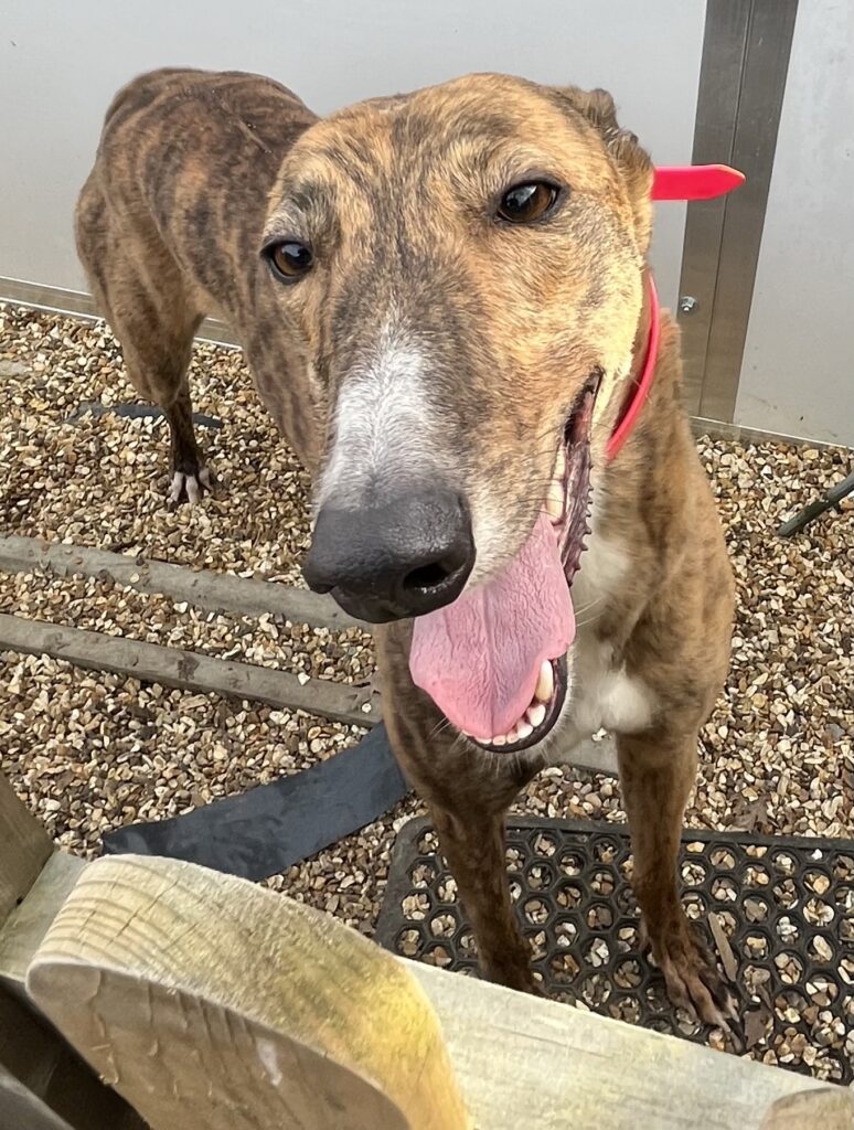 Our gorgeous girl lives alongside 7 other greyhounds both girls and boys, she gets on well with them all. Kolby isn’t a big fan of thunder and fireworks but she will just curl up alongside one of her friends. She doesn’t show a huge amount of stress as long as she has the comfort of her friends or you to sit near.