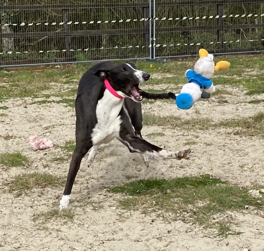Noodle is in kennels near Fleet, Hampshire, she arrived with us on the 6th April 2021 and she was born on the 14th February 2017.