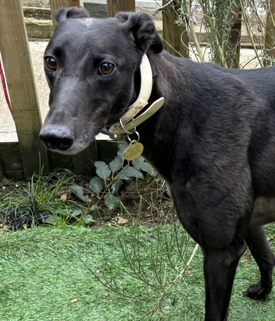 Saffy can be easily spooked and likes a small area she can hide in, until she feels brave enough to come out and try again. She loves her bed and prefers a big fluffy bed that she can sink into, this is her favourite kind of bed! During the day Saffy spends most of the day in the house, getting used to home living and is around several other greyhounds. She is quiet within the home, likes to cuddle up to another greyhound – male or female. Each morning she will greet you with a waggy tail, a lick on the hand and just be really happy to see you!