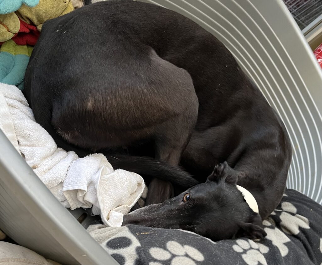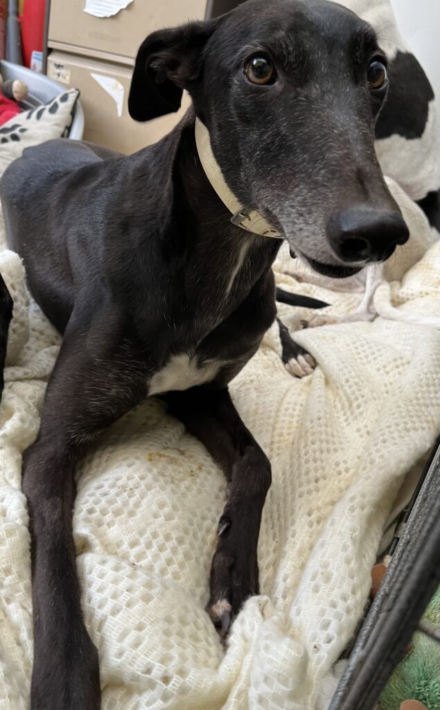 She has been very well behaved within the home environment, nothing seems to phase her, Sloane gets on well with the other six greyhounds that she lives with. She can easily walk on different types of home flooring with ease. Sloane loves her bed, she would like a nice soft, padded one that is nice and warm too!