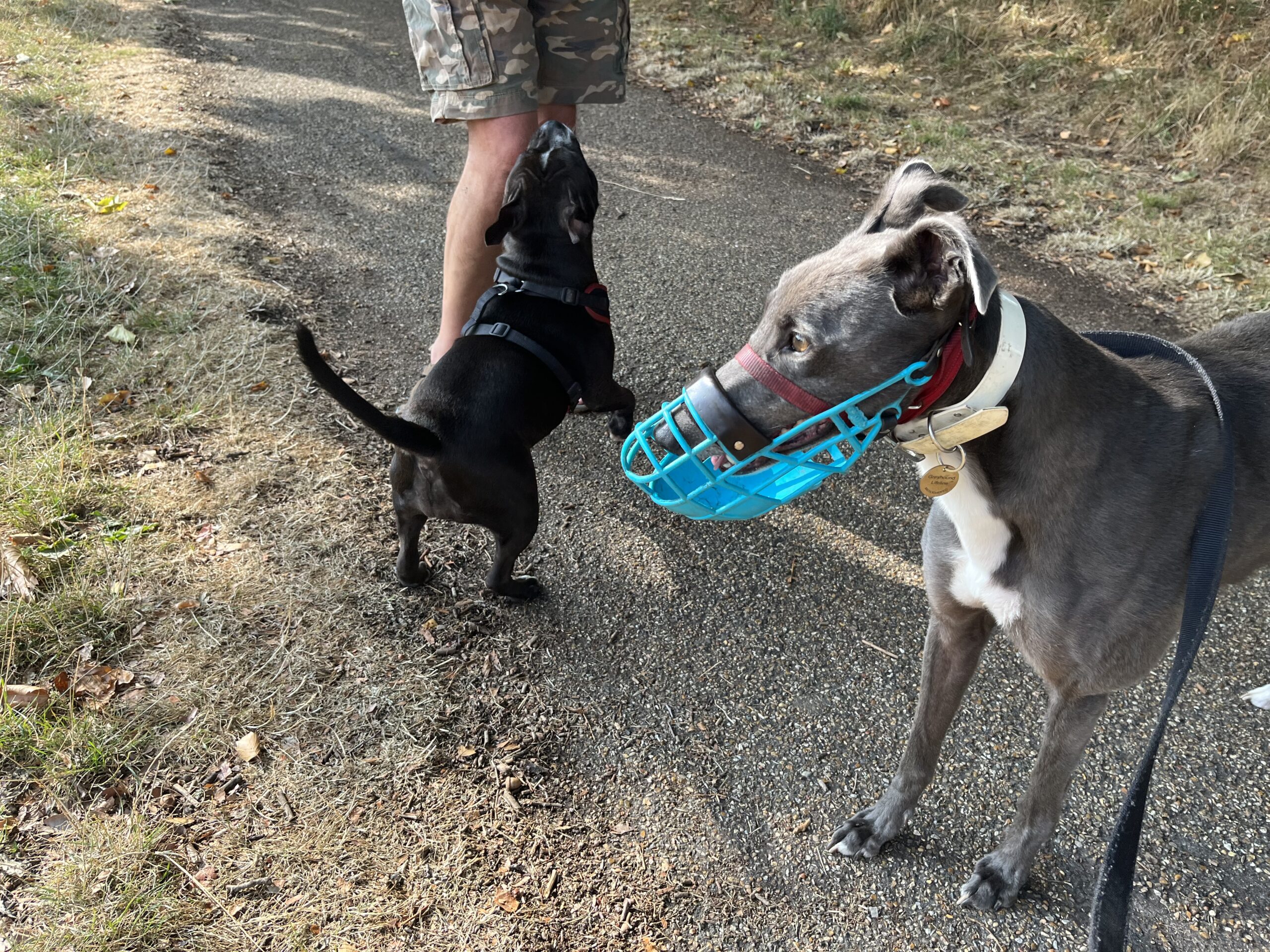 She has met other breeds of dog and made friends quite easily with them. Zaza now needs an owner who can continue the socialisation process with her, introducing her to breeds of all sizes in a controlled manner. Zaza can get excited when she wants to play with other dogs (breeds and sizes), she is quite happy play bowing and just being happy on the lead around them!