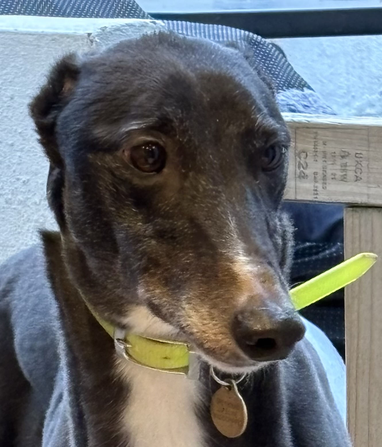 Our gorgeous girl lives alongside 7 other greyhounds both girls and boys, she gets on well with them all. Lowie has given us no negative behaviour around other breeds of dog, she is intrigued about what they are – big and small breeds. She will watch them as they go by and will listen to her handler if she is asked to wait on walks. Lowie needs to continue her training around other breeds of dog, seeing them from afar and up close.