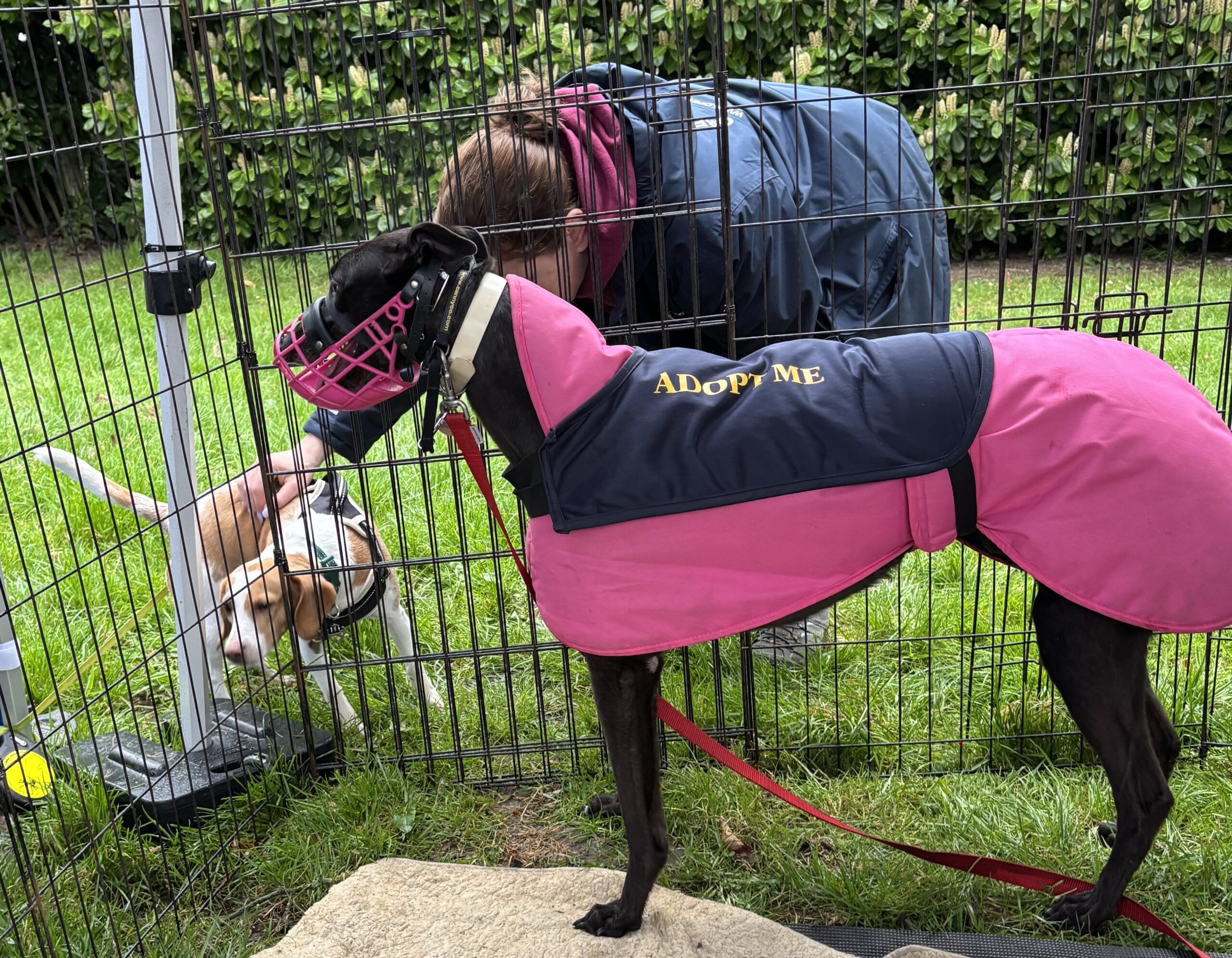 Our gorgeous girl lives alongside 9 other greyhounds both girls and boys, she gets on particularly well with the boys.