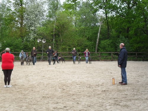 “That’s enough Paddy – it’s my turn now!!” Well, you can imagine, a dog as good looking as me was bound to attract attention. Vic entered me for the “Best looking Bitch” Competition which was good fun but even I have to admit, that the girl who won had a slimmer waist and definitely more gloss to her fur!! Not to worry, I impressed a few humans with my blue Caring Canines bandana and stories of my charity work. I feel that I was a shining ambassador for the Greyhound breed, which is more than can be said for Paddy who snatched the remains of a chocolate chip muffin out of the bin and tried to eat it. Mum had to grab it out of his mouth – what an embarrassment!