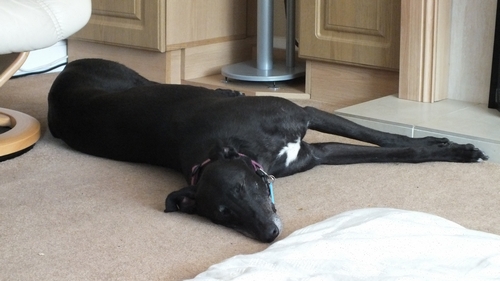 We stopped for refreshments and I got some tidbits, Dodger wasn’t interested in tidbits he just crashed out on the grass in the shade of the picnic table. I stood there watching people passing by and succeeded in generating yet more interest in us Greyhounds and our needs, with even more information given out about Greyhounds and Greyhound Lifeline before it’s back to the car to go home.