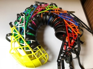 Greyhound Muzzles Posted on 21/11/2011 by Lucy Plastic box muzzle One size fits all. Colours: Black, White, Red, Blue, various Price: £[cf]product-price[/cf]