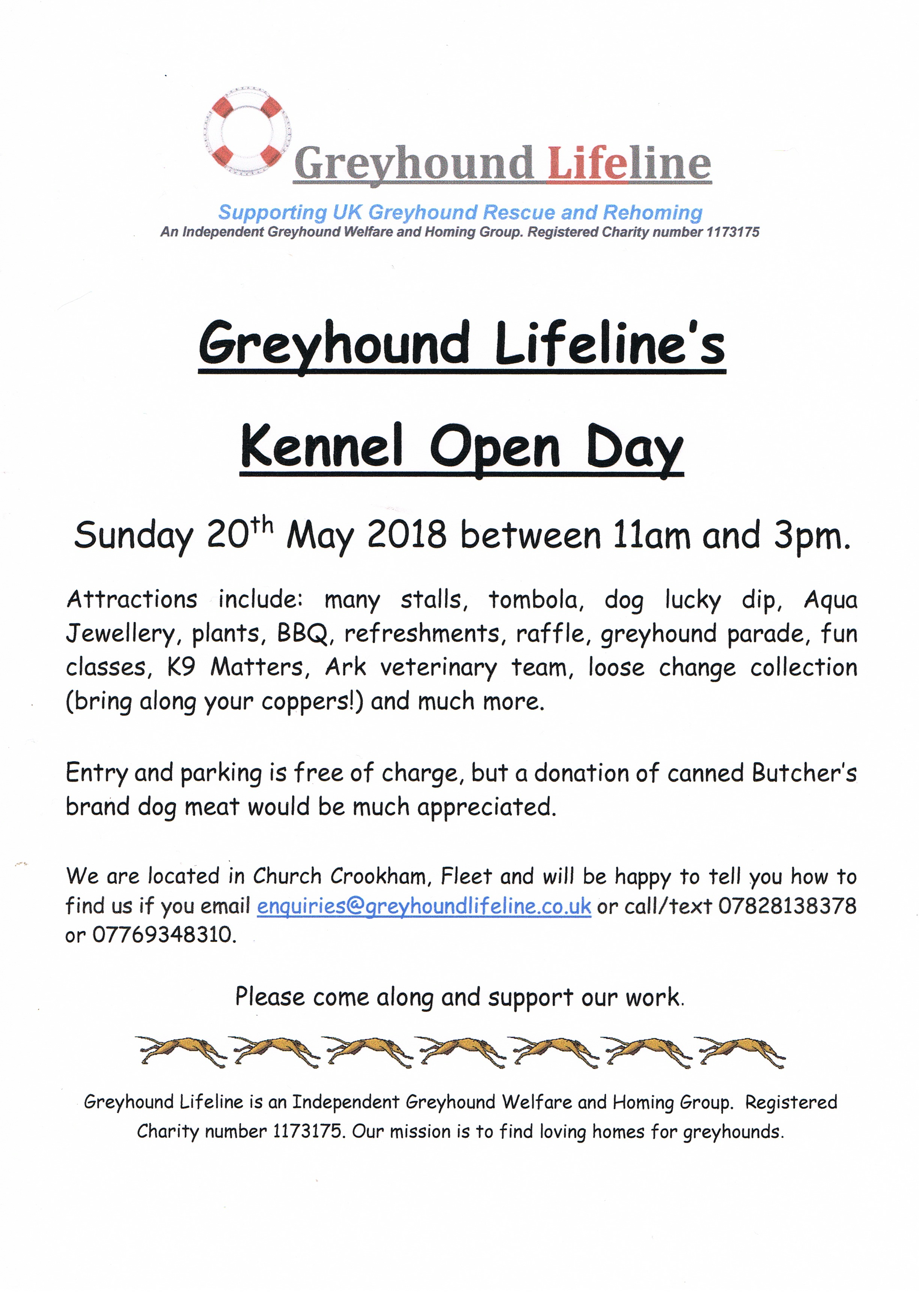 We will be in Fleet on this date raising awareness of Greyhound Lifeline.