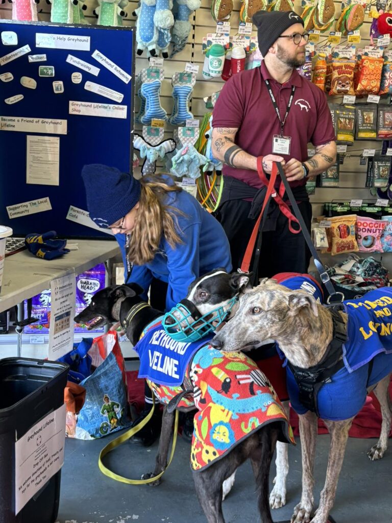 We had a lovely Saturday’s morning in Jollyes, the staff were very welcoming and the greyhounds all enjoyed their cuddles and treats from the staff and the public.